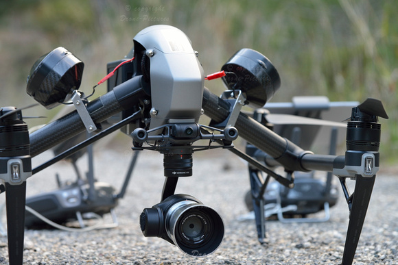 Quadricoptère DJI Inspire 2 avec parachute et 2 opérateurs (pilote + cadreur).